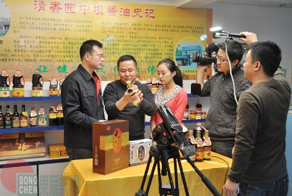 四川電視臺(tái)《健康食品進(jìn)萬家》欄目組到四川清香園調(diào)味品公司拍攝專題片