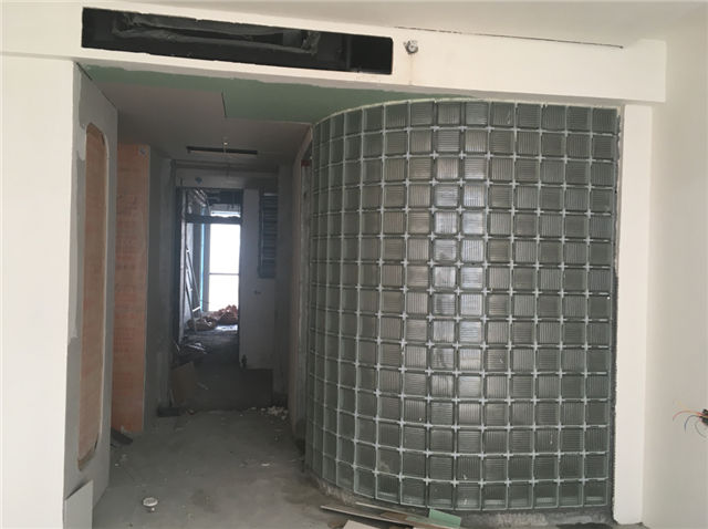 3、酒店:客房內(nèi)吊頂封板、刮膩子完成,墻面刮膩子、裝飾基層施工完畢,衛(wèi)生間貼墻地磚、玻璃磚隔斷施工完畢。五層早餐區(qū)隔斷施工完畢。外立面幕墻大面積已完成,入口雨篷玻璃安裝完畢。